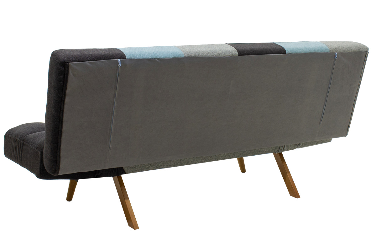 - Ο καναπές διαθέτει 4 κομψά μεταλλικά σε φυσικό χρώμα με προστατευτικά για την καλύτερη δυνατή στήριξη και την προστασία του πατώματος από ανεπιθύμητες φθορές. Επίσης η πλάτη φέρει εσωτερικό κρυφό μεταλλικό πόδι για πιο ενισχυμένη στήριξη όταν γίνεται κρεβάτι.
