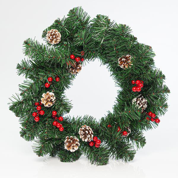 ΣΤΕΦΑΝΙ 50cm, ΜΕ ΧΙΟΝΙΣΜΕΝΕΣ ΚΟΥΚΟΥΝΑΡΕΣ ΚΑΙ BARRIES, 80 TIPS (ΠΑΧΟΣ ΤΩΝ TIPS 8cm), ΠΡΑΣΙΝΟ ΧΡΩΜΑ